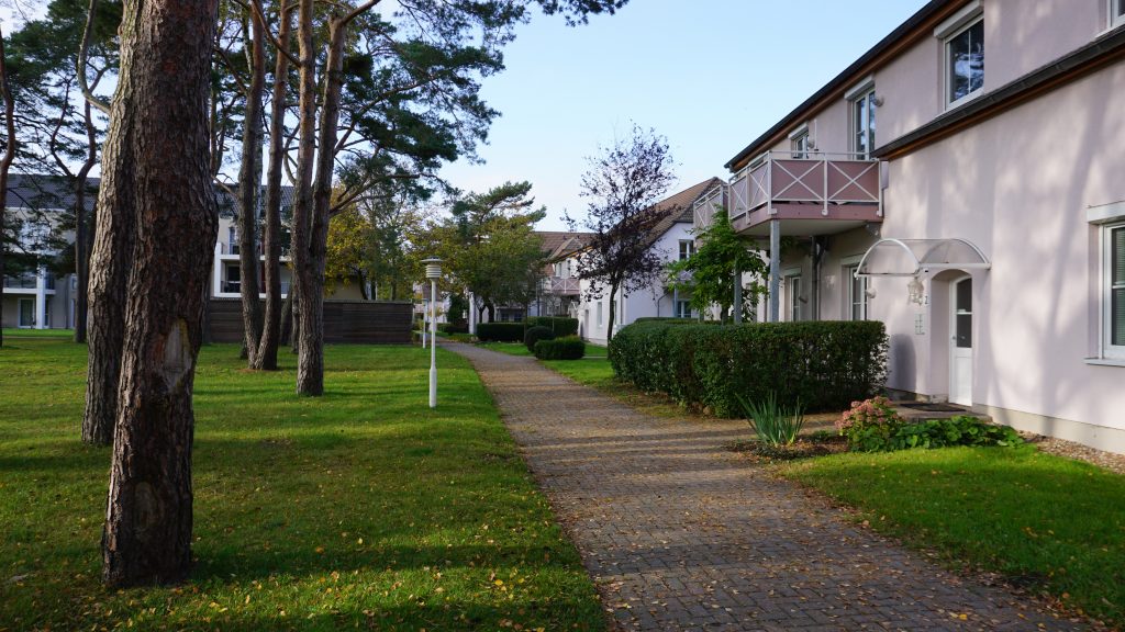 Unsere Ferienwohnungen befinden sich in einer überschaubaren Apartmentanlage in der Nähe des kleinen Kurparks. Der feinsandige, weiße Strand ist etwa 250 m entfernt